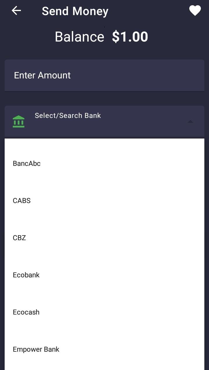 - From the list of available banks, choose EcoCash.