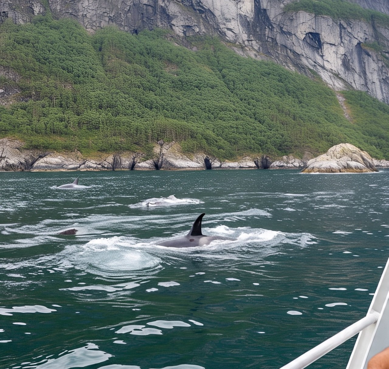 Orcas are highly social creatures, exhibiting complex social structures known as pods, which can consist of family groups or unrelated individuals. Each pod has its own unique dialect and hunting strategies, which they have developed over generations. These apex predators are known for their intelligence and adaptability, making them efficient hunters. They primarily feed on fish and marine mammals, employing techniques such as cooperative hunting to secure their meals. Their striking black-and-white coloration makes orcas easily recognizable, further adding to their appeal during whale watching excursions.